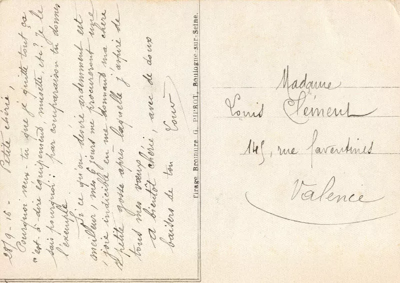 28/09/1916 | Louis | Mme Clément | 14-18 | Auvergne-Rhône-Alpes | Valence | Carte colorisée |
