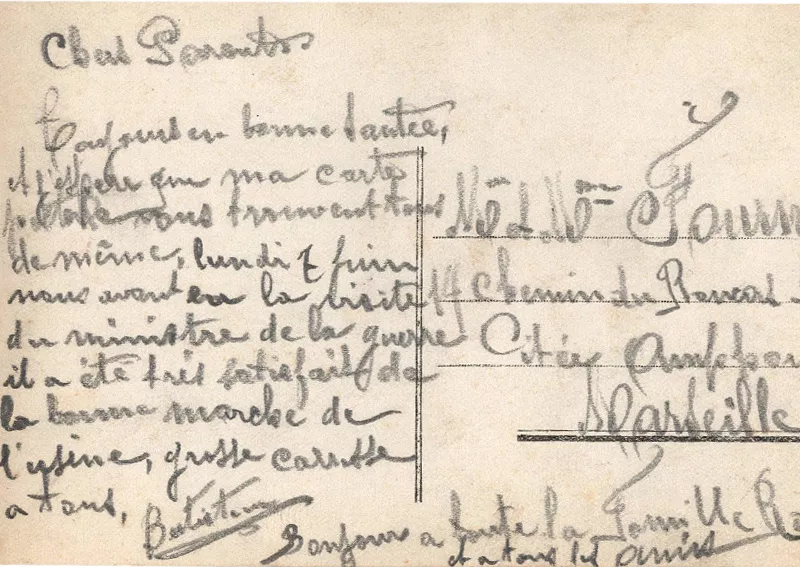 Batistin Fournier | M. et Mme Fournier | 14-18 | Provence-Alpes-Côte d'Azur | Marseille | Départ à la guerre | Carte colorisée |