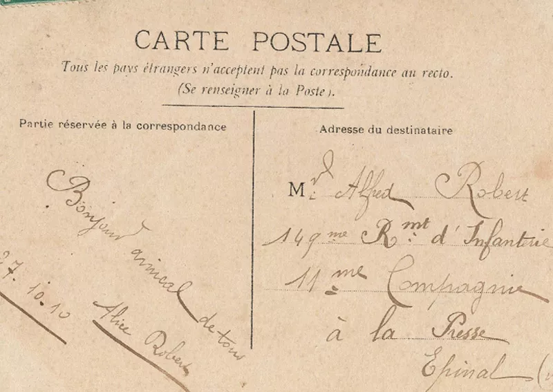 27/10/1913 | Alice Robert | Alfred Robert | 14-18 | Grand Est | Epinal | Carte colorisée |