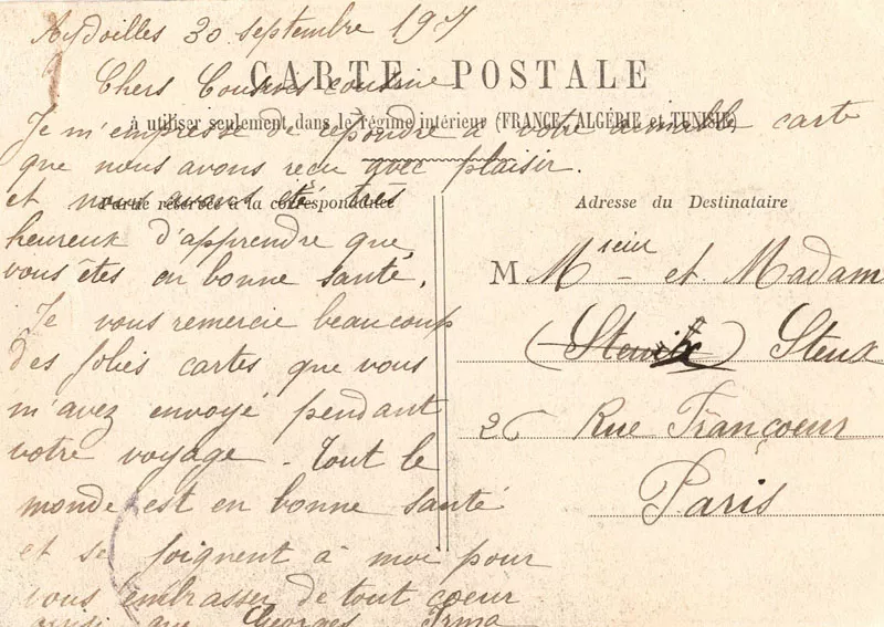 30/09/1907 | M. et Mme Stutz | Contemporaine | Île-de-France | Paris | Carte colorisée |